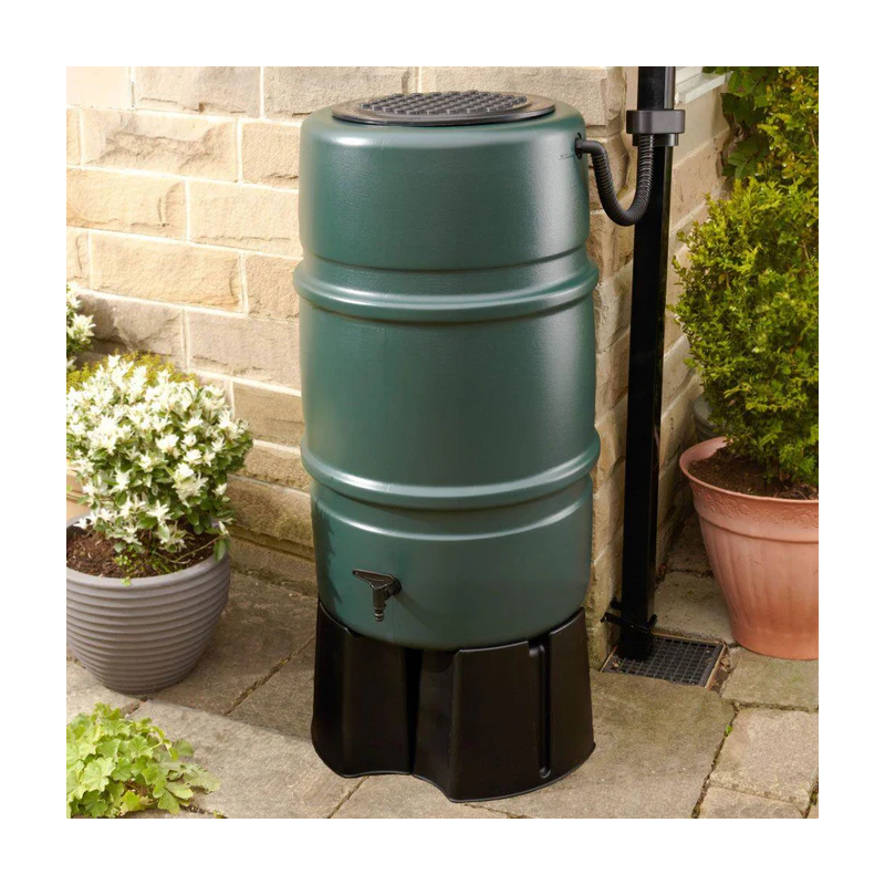 Your complete kit to save water for garden use, including 227 litre water butt, tap, lid, stand and downpipe connector kit.